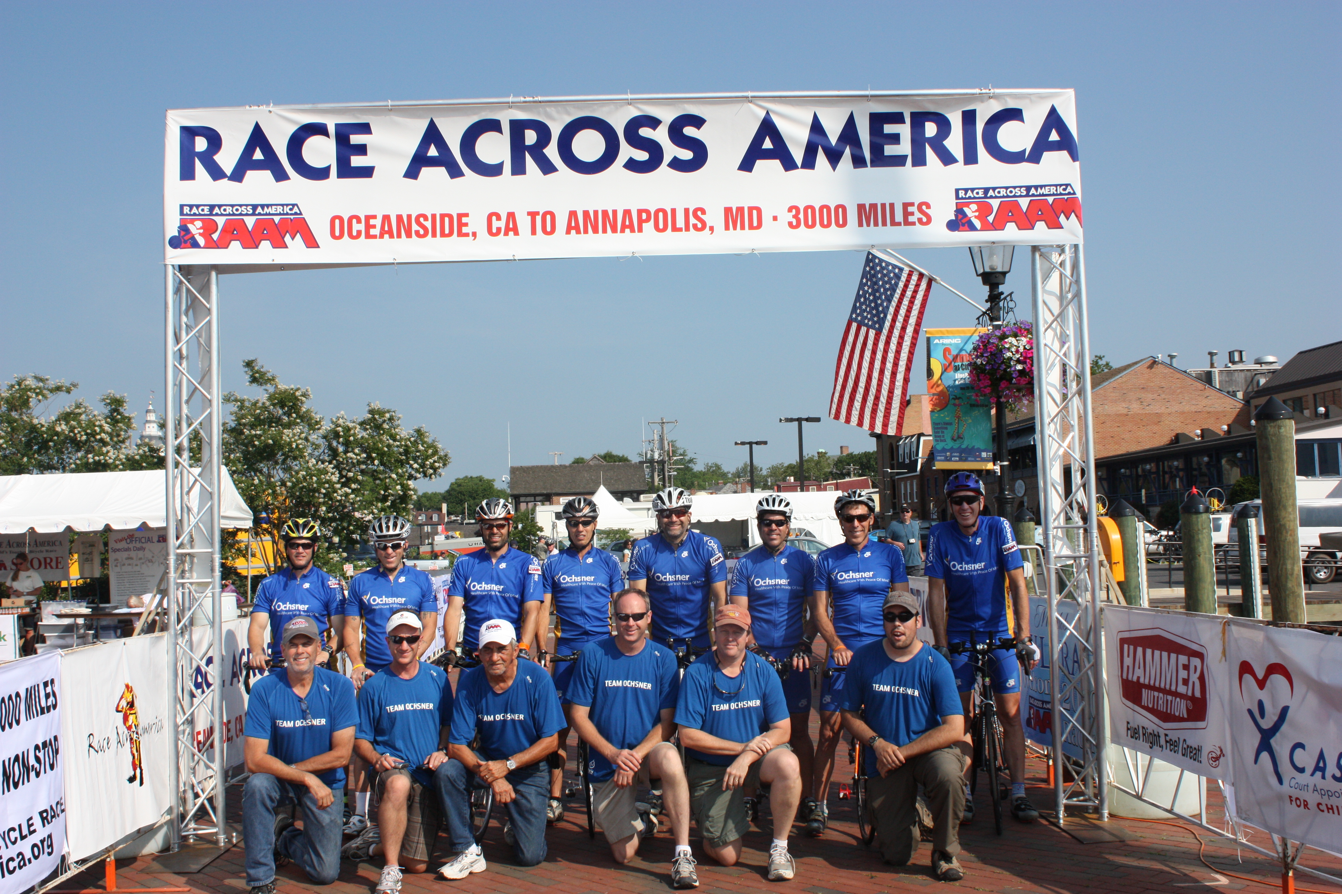 I first started training with 14 miles of outdoor riding, then training for the two-day 75 mile MS Tour Ride, then a back-to-back ADA century ride, then run training for my first half marathon, then a full marathon, then my first sprint triathlon, then an Olympic triathlon, then a half Ironman triahthlon, then a second half Ironman triathlon, and then the full Ironman triathlon. Then two and a half years later, the 3,000 mile Race Across America – the world’s toughest bicycle race.